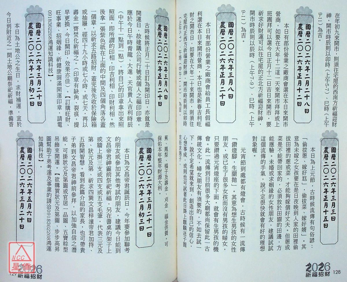 2026祈福招財農民曆