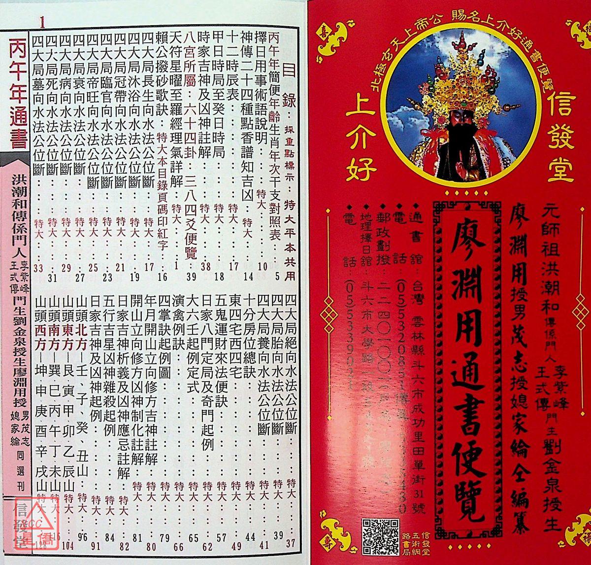 2026上介好廖淵用通書便覽(平本)【民國115年】丙午(白沙屯媽祖封面)