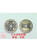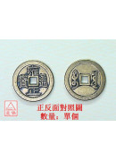 表面消光古銅色澤 直徑 5.4 公分 前面圖樣是八卦,後面圖樣十二生肖。 此銅錢功用...